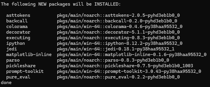 - 맨 뒤에 anaconda를 인수로 추가하면 base에 설치되어 있는 패키지를 기본으로 다 설치해준다.
